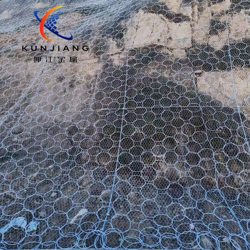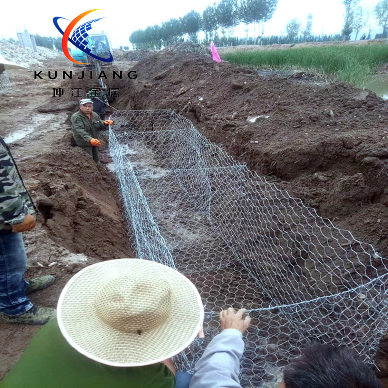 铅丝石笼网是将抗腐蚀耐磨高强的低碳高镀锌钢丝或5%-10%铝锌合金镀层钢丝,由机械将双线绞合编织成多绞状,六边形网目的网片,其双线绞合部分的长度应不小于5cm,以不破坏钢丝的防护镀层。